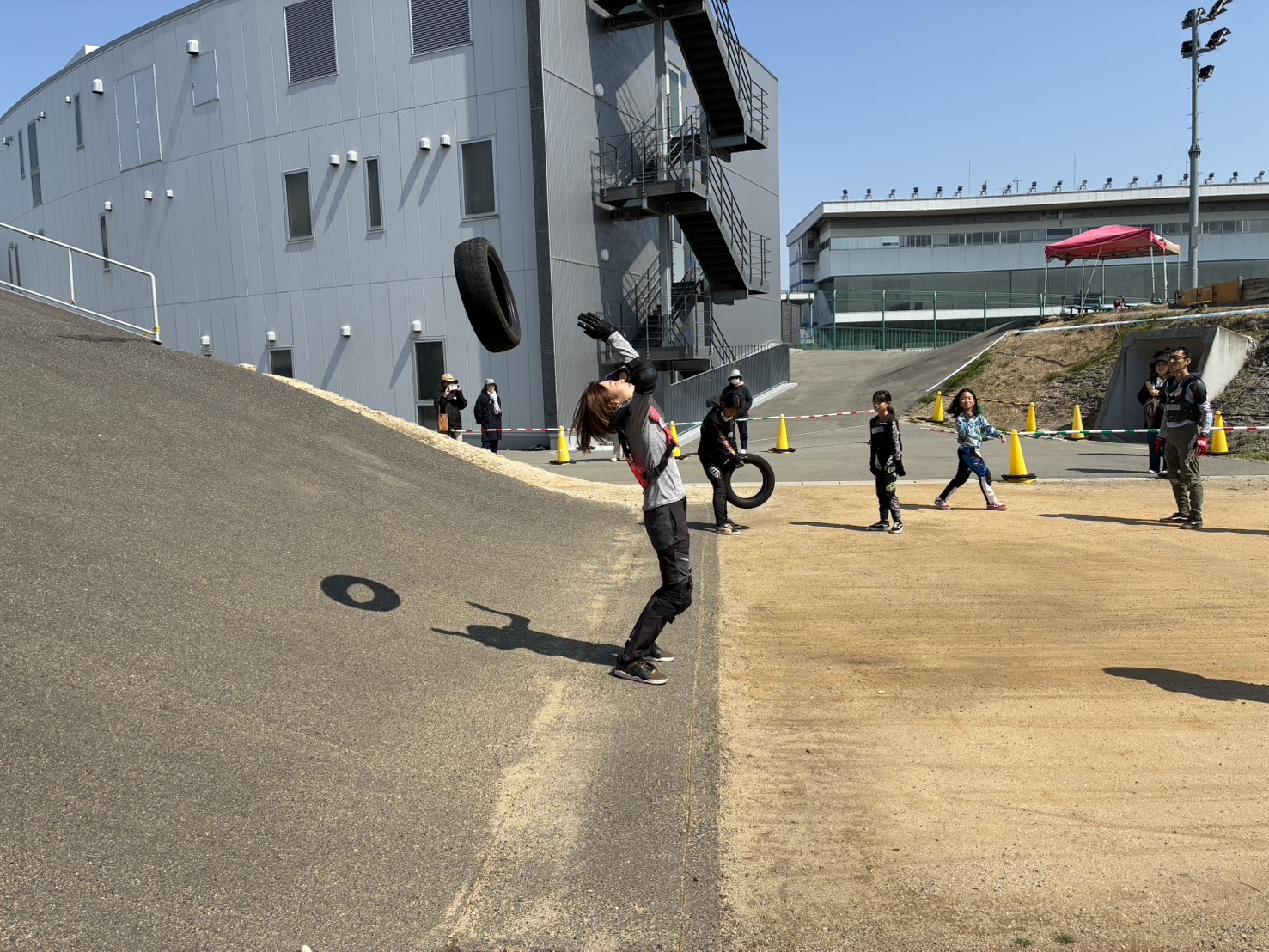 タイヤ投げ、ラストにゲート練習と