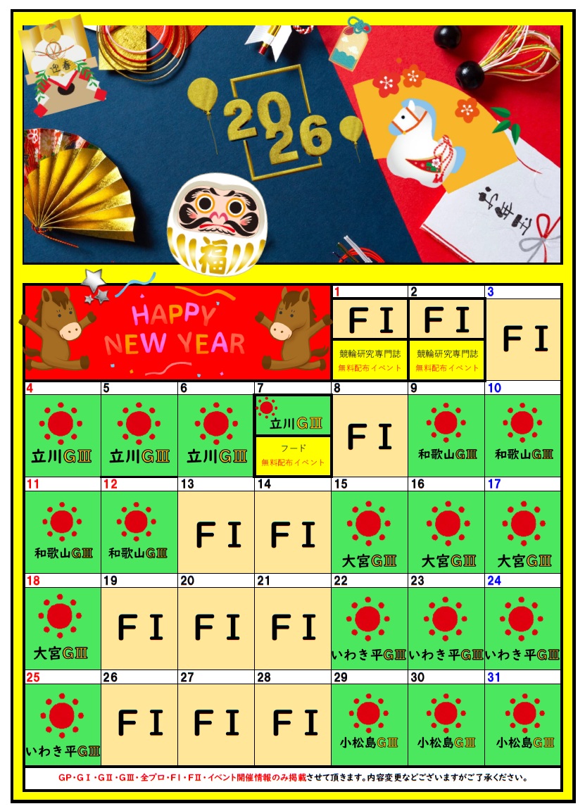 1月イベントスケジュール★カレンダー