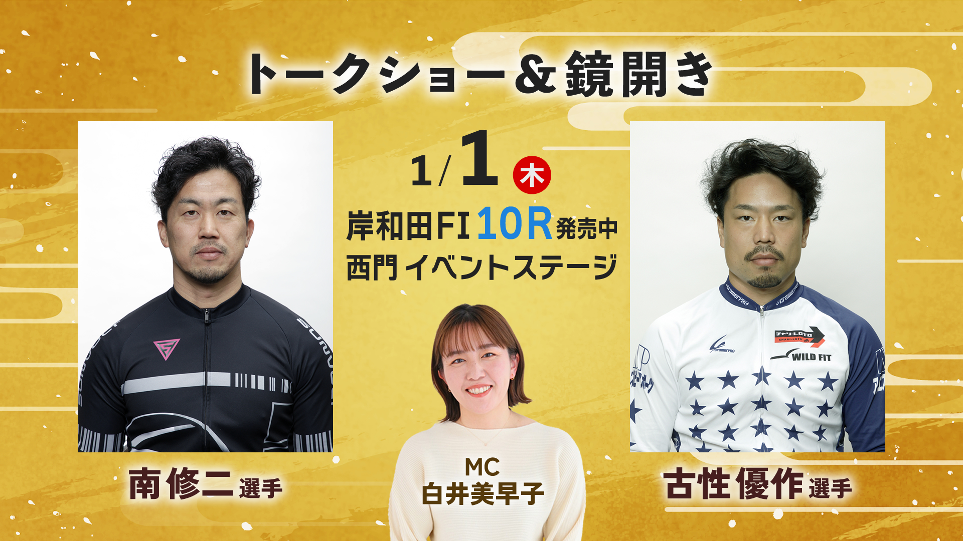 1月1日(木)は岸和田競輪場にてKEIRINグランプリ2025に出場されます古性優作選手と南修二選手のトークショーをおこないます!