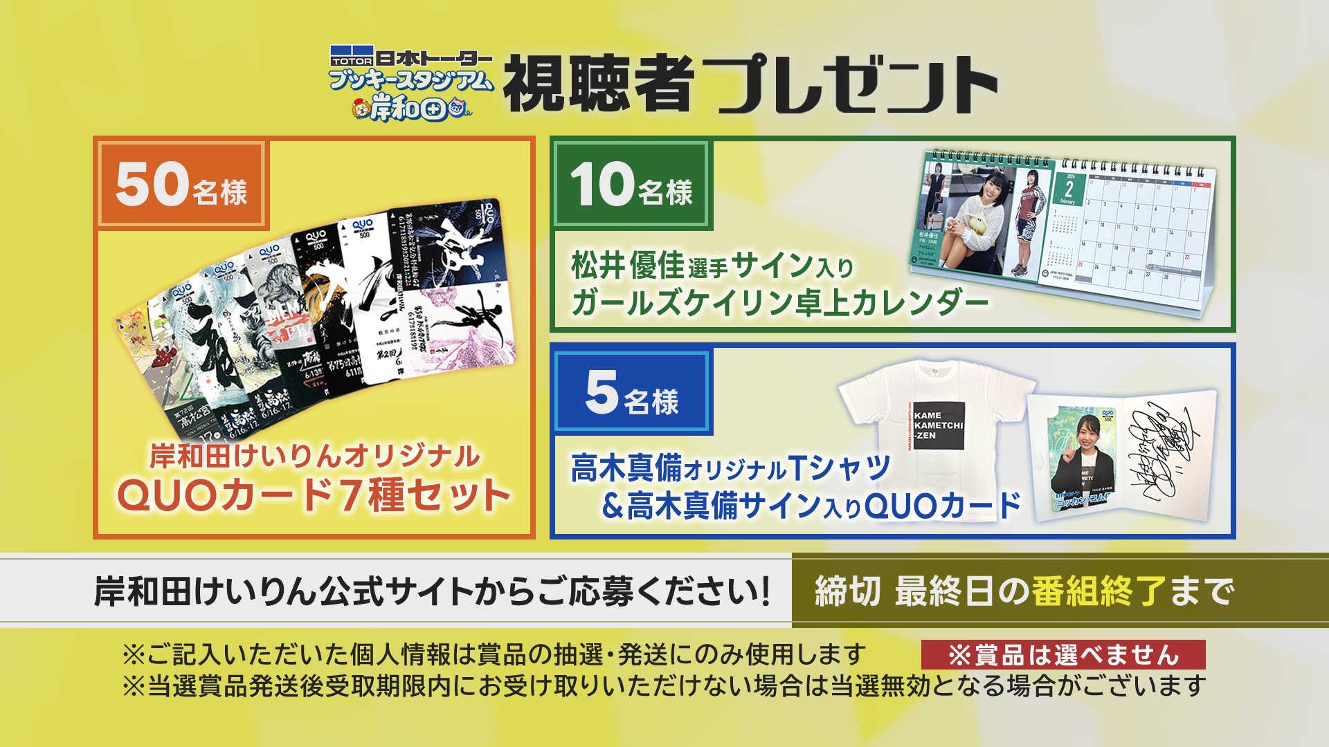 | 放送時間 | 初日10:00~16:30、2日目11:00~16:30、最終日11:00~16:50 |
